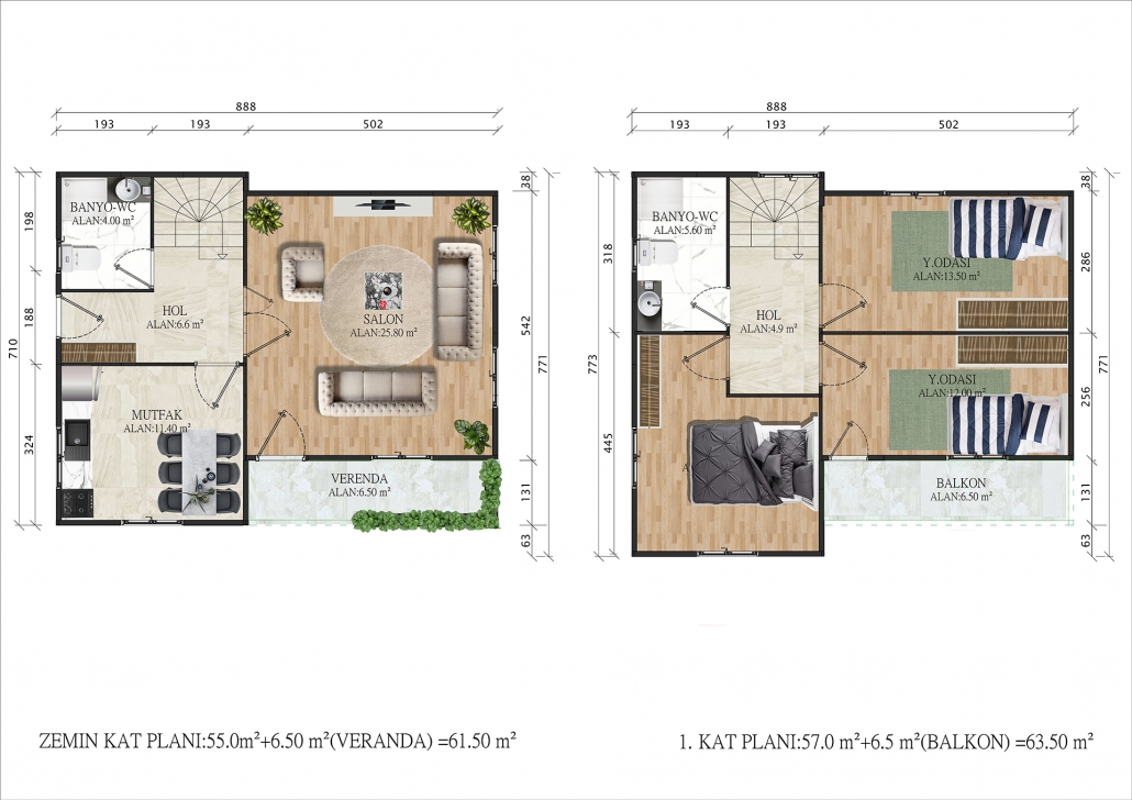 2 katlı fonksiyonel yaşam planı