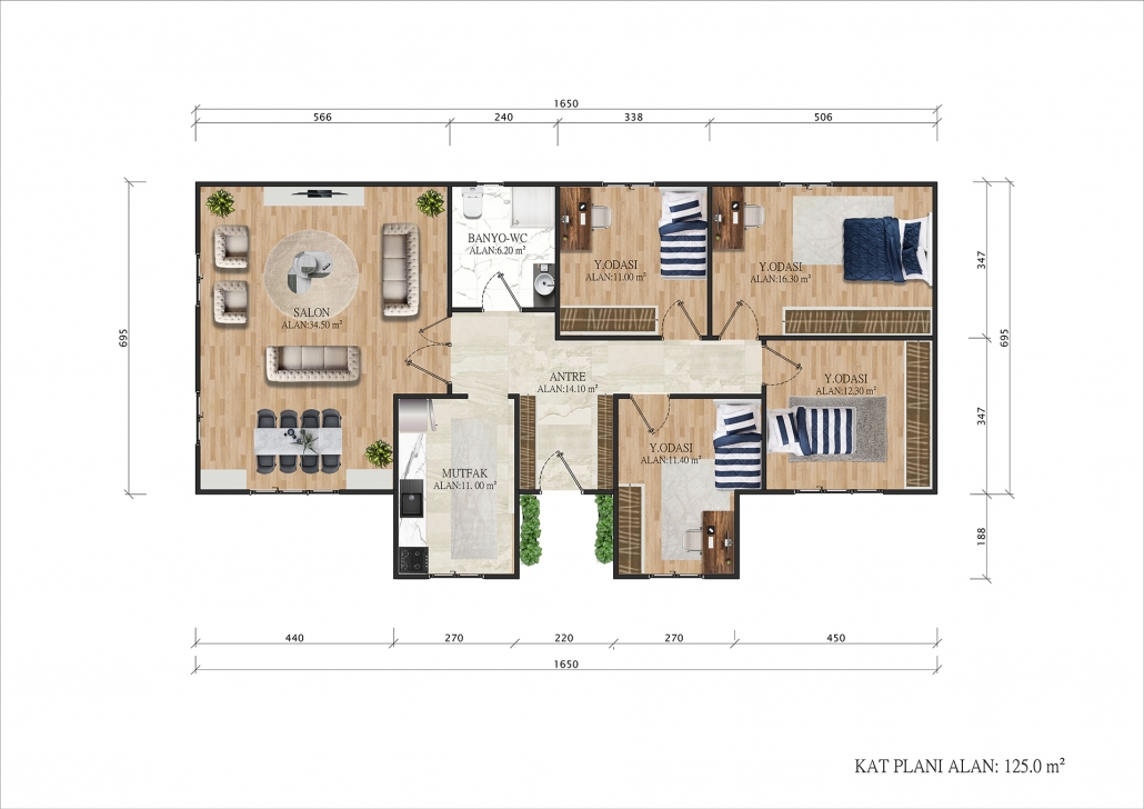 125 m² kullanım alanı