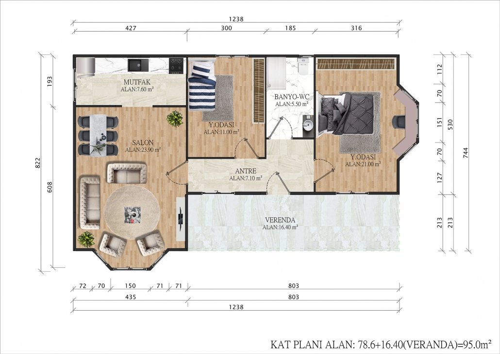 • DIŞ KAPI: ÇELİK KAPI