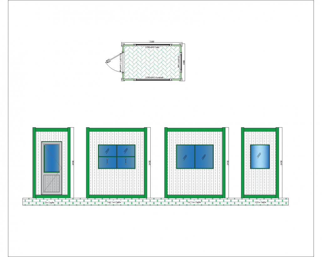 Bu panel kabin, geniş cam detayları ve dayanıklı yapısıyla modern ve kullanışlı bir yapı çözümü sunmaktadır. 2100 mm x 2100 mm taban ölçülerine ve 2540 mm yüksekliğe sahip olan bu kabin, özellikle şantiye, güvenlik noktaları ve geçici ofis alanları için idealdir. İç mekan, geniş pencereler sayesinde doğal ışıkla aydınlatılır ve ferah bir ortam sağlar.
