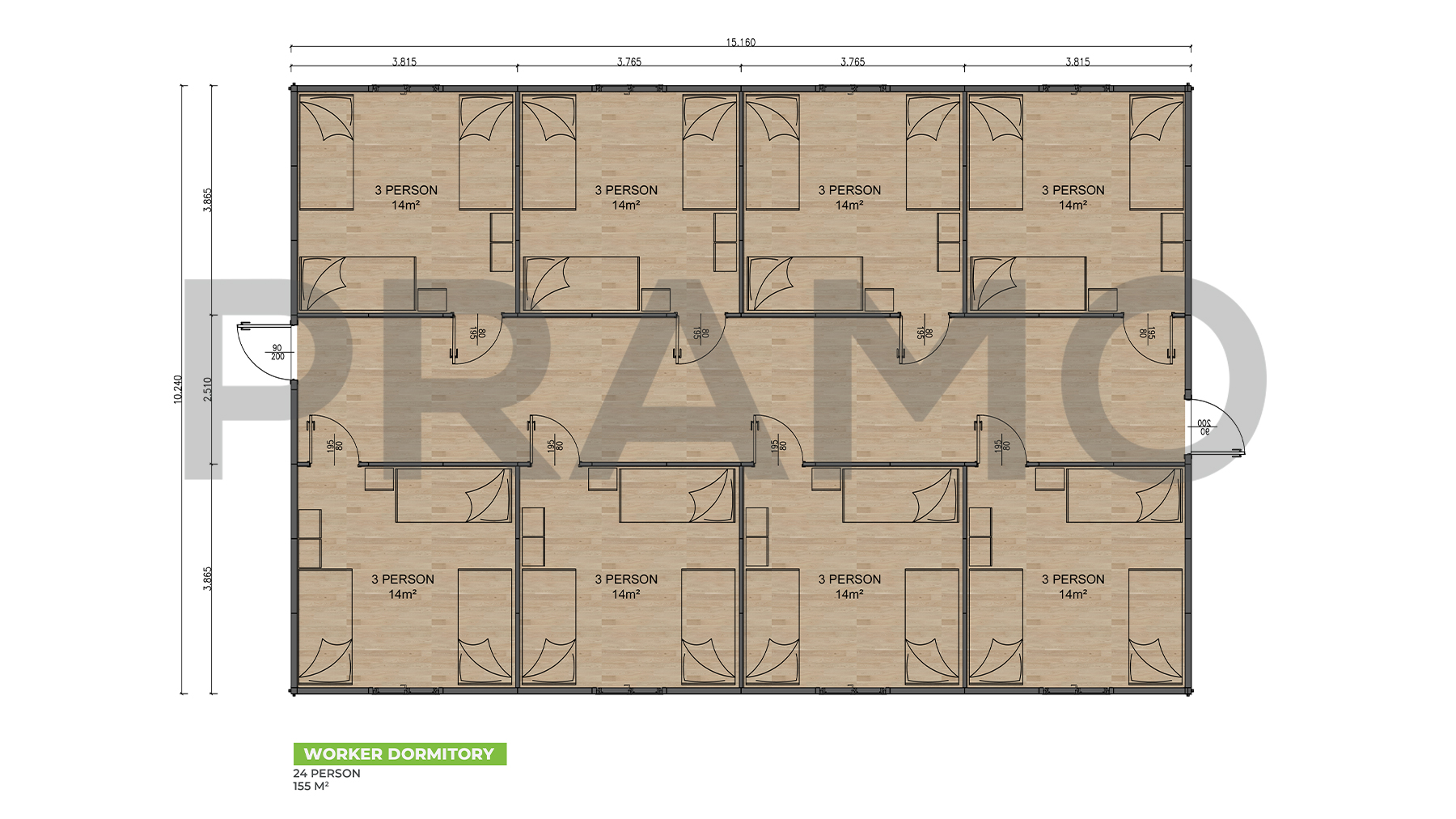 155m² Prefabrik İşçi Yatakhaneleri