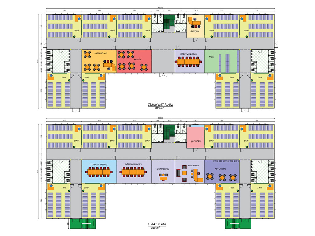 1630 M2 ÇİFT KATLI PREFABRİK OKUL BİNASI