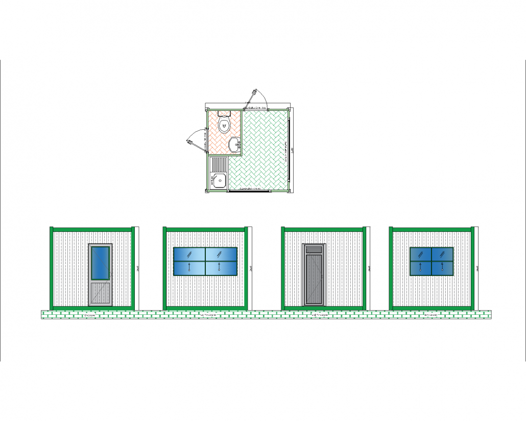 Bu panel kabin modeli, hem çalışma alanı hem de tuvalet ve lavabo gibi temel ihtiyaçları karşılayan bir yapı olarak tasarlanmıştır. Görseldeki plana göre, kabin içerisinde bir tuvalet bölümü, lavabo alanı ve geniş bir iç mekan bulunmaktadır. Bu özellikleri ile şantiye alanları, geçici ofisler ya da sosyal etkinlik alanları gibi yerlerde pratik bir çözüm sunmaktadır.