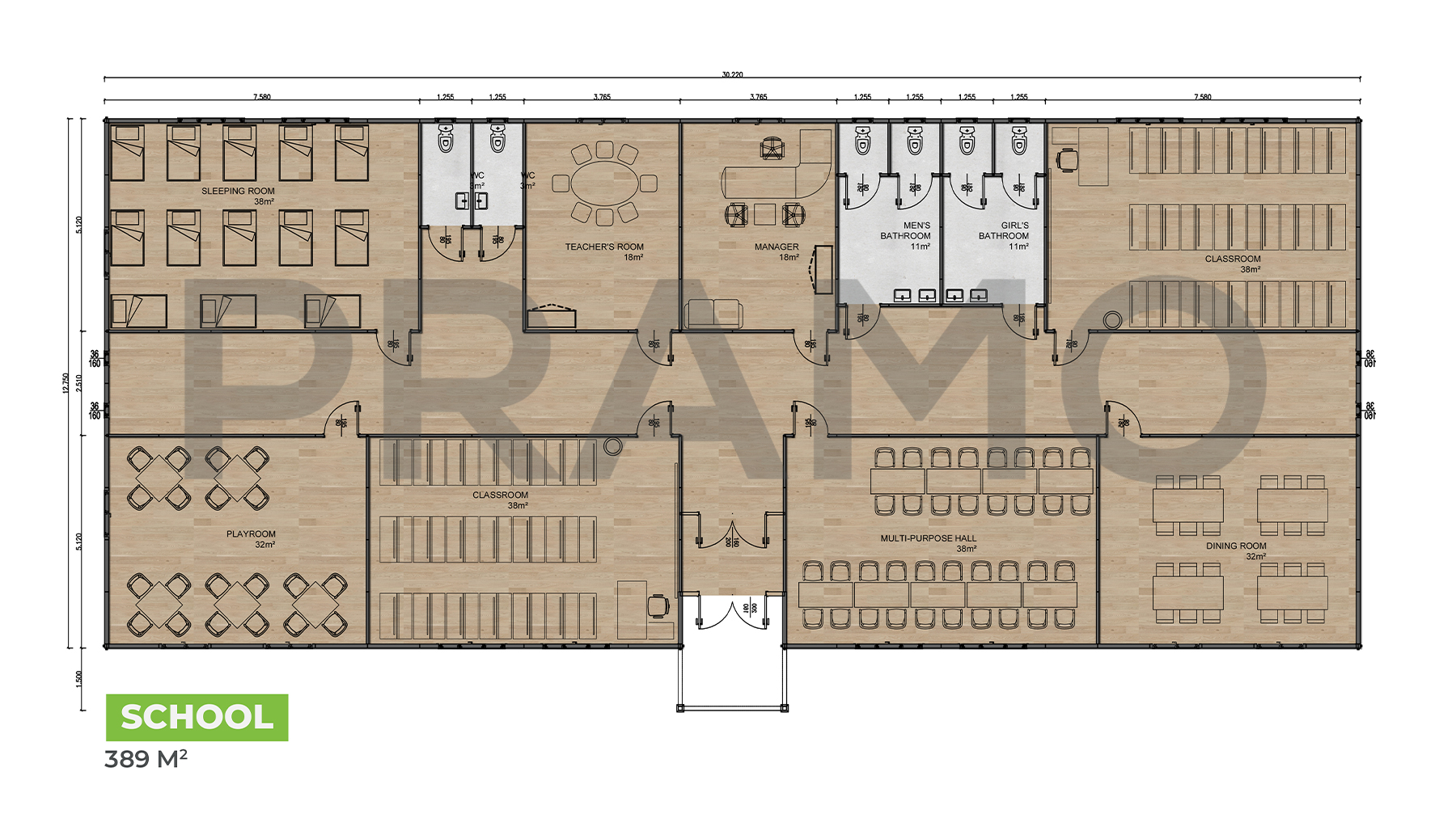 389m² PREFABRİK Okul Binaları