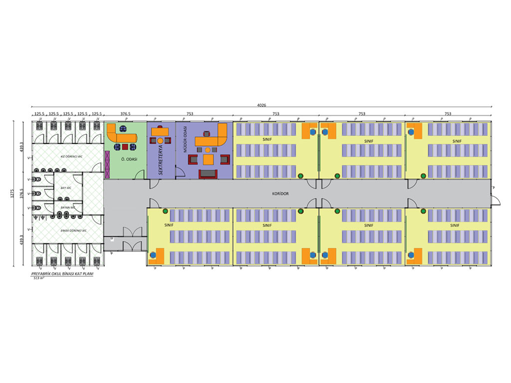 513 M2 TEK KATLI PREFABRİK OKUL BİNASI